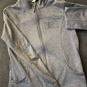Full zip women’s track style jacket. Lightweight and slim fit featuring thumbholes and a zipper pocket on lower back. 100% polyester fleece. Like New. From smoke free and animal free home.