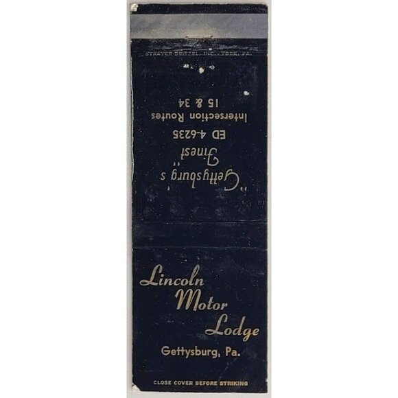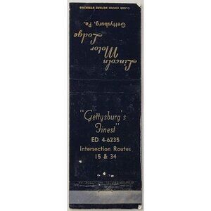 Front Strike Matchbook Cover Lincoln Motor Lodge Gettysburg PA Pennsylvania
