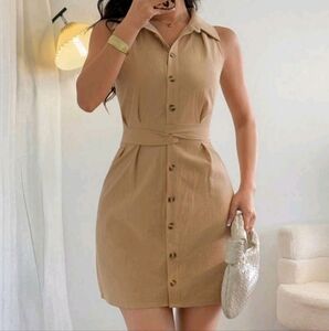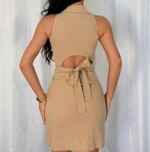 Front Waist Tie-Up Back Hollow-Out 100% Cotton Dress