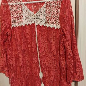Front of Closet Plus 3x Red Lace Peasant Blouse with White Lace & Cord Detail