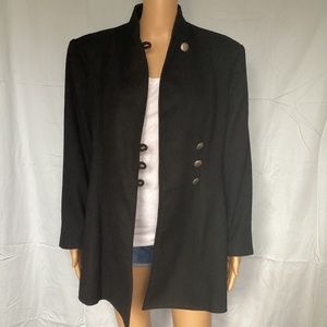 Beautiful jacket. Flares beautifully from waist. Fully lined. 2 side pockets. Size 6. Length from shoulder 29”. Sleeve length 22.5”. Armpit to armpit 19”. 85% wool. I just wish it fitted me!