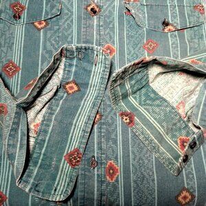 Frontier Series Western Shirt Small Teal Southwest Geometric Button Down READ