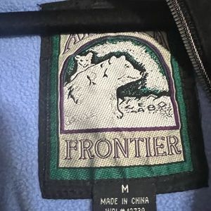 Black with white trim. Blue liner is 55% down and 45 % feathers. Liner can be removed. Hoodie can also be removed. Sleeves have adjustable snaps.