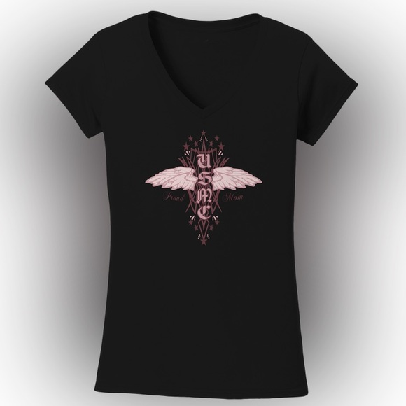 Frontline Military Apparel Angel USMC Ladies V-Neck Tee Black Size Large NEW