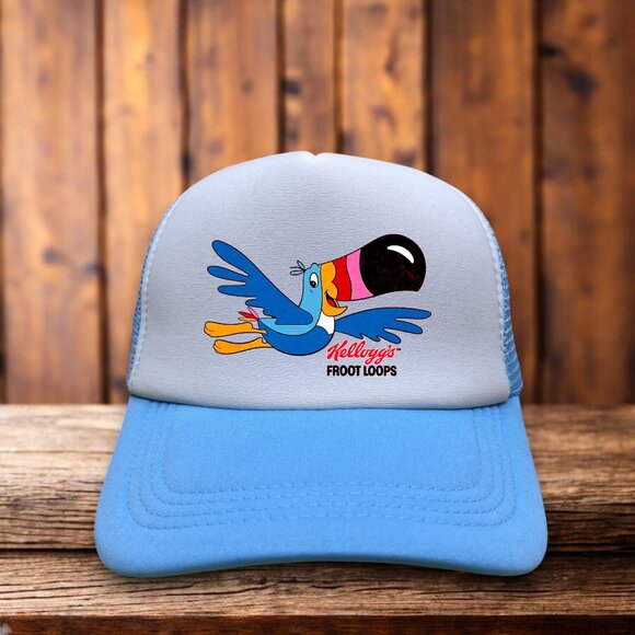 Froot Loops Mens Trucker Hat Blue Snapback Retro Cereal Ad Vintage Logo Cap