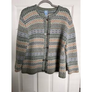 Frost 100% Lambs Wool cardigan sweater with metal fashion clasps - size XL