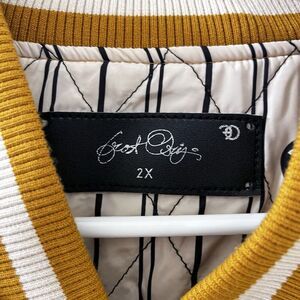 Frost Originals Frost Money Dance Corduroy Jacket Wheat F1050 Men's Size 2X. Very cool and unique jacket, applique, embroidered and graphic print. Has been worn and there are some marks/scratches to the corduroy, but no other major issues that I can find. Please see the pictures. Good Used Condition.