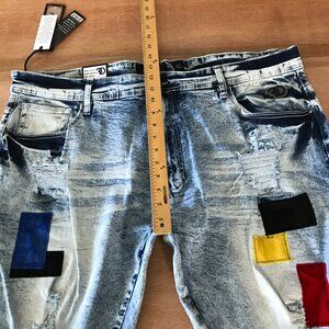 Frost Originals Patchwork Jeans Men 46x33 Blue Mid Rise Distressed Grunge Skater 16714