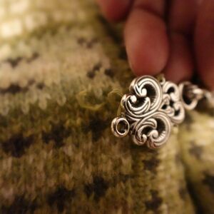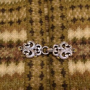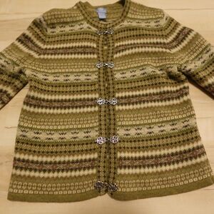 Frost Women Large Sweater Cardigan Lambs Wool Green Nordic Metal Clasps Soft