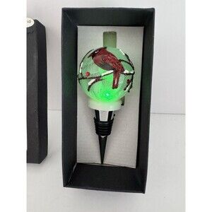 Frosted Cardinal Bird Light Up Wine Stopper Barware Christmas Holiday WORKS