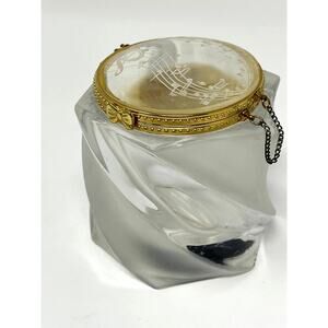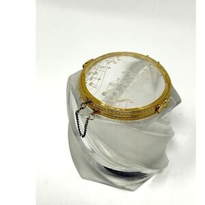 Satin Frosted Crystal & Gold Trimmed Hinged Dresser Trinket Box W/ Musical Notes