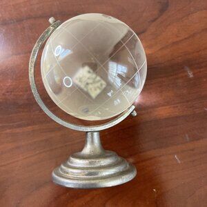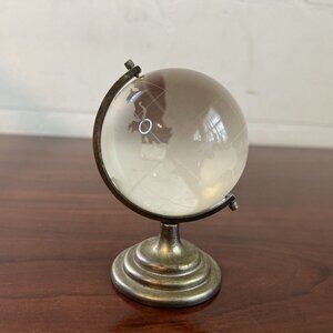 Frosted Etched Glass Crystal World Earth Globe Statue with Stand Paperweight