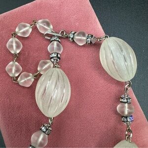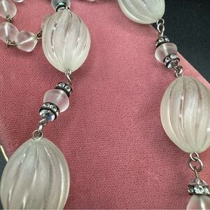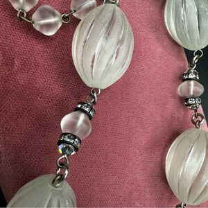 Gorgeous clear, white tinted frosted beads with faux rhinestone spacer beads in a stationary chain that measures 18.5in unclasped