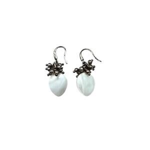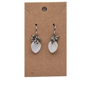 Add a bit of vintage charm to your look with these silver-tone drop earrings featuring frosted teardrop-shaped cat's eye glass dangles and beaded cluster accents. The brushed silver finish on the ear wires adds a rustic feel, while the translucent white stones give off a soft, ethereal glow. Lightweight and easy to style — perfect for everyday wear or adding a whimsical touch to a romantic outfit.