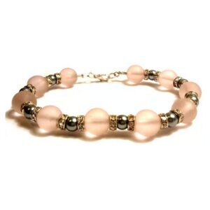 Newly handcrafted from ShopAtLuxe, this high quality hand beaded bracelet features an exquisite strand of frosted pink and alternating silver beads with crystal spacer embellishments. Measures eight inches. Lightweight, comfortable fit. Ideally for 7 to 8 inch wrist sizes. Silver lobster claw closure. Hypoallergenic; lead and nickel free. Complimentary gift with purchase!