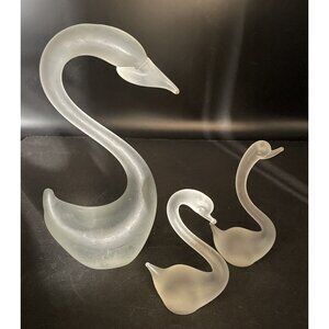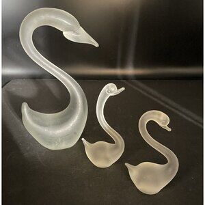 Frosted Satin Glass Swans Set of Three Figurines