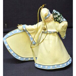 "Frosty Christmas Eve Santa" Christmas ornament, from the Thomas Kinkade's Ashton Drake Old World Santas ornament collection. Features Santa holding a tree and a robe displaying a Thomas Kinkade winter scene. Hand painted with glitter accents. Approx 4" tall. This is preowned with minor signs of wear. There is also a year written on the inside on bottom of robe, I believe it says 2007 or 2009. Please review photos as a part of the description.