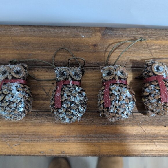 Set of 4 frosty winter Owl Ornaments are charming Christmas ornaments featuring a snow-covered owl design. Each ornament measures 2"x3" inches and is made of resin, adding a touch of whimsy to your holiday decor. These handmade ornaments are perfect for collectors or anyone looking to add a touch of woodland charm to their Christmas tree.