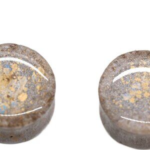 These handcrafted 20mm gauges are made from metallic silver resin, creating a bold and eye-catching base for the glittering design. The front side features a layer of fine silver glitter, accented with touches of light bronze and a subtle pop of teal shimmer for extra depth and sparkle.