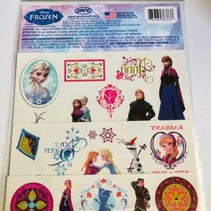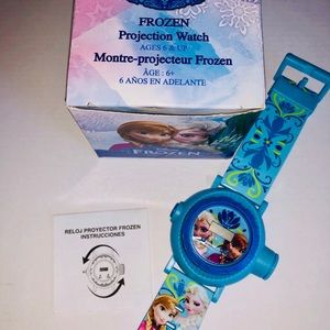 Gently used and new items for a collector or gift! From 1st Frozen movie. As is. The doll rotated and music plays in box. Watch still lights up the graphic. Lights not dim enough for picture. Time not shown on watch because needs batteries. Metal box to store stuff. Stickers and tattoos new in packing. Hair berets. Mini note pad and pen. Perfect for the Frozen fanatic! You get everything in pictures, as is.