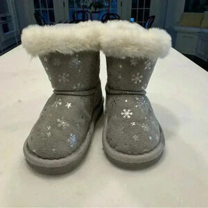 Frozen gray & white w/ snow flakes & rhinestones girls boots size 6 NWOT