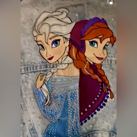 Hand painted and rhinestoned frozen adult large jean jacket. Levi’s jacket. Can be made in other sizes