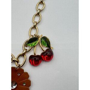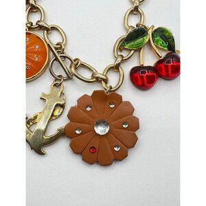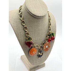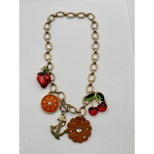 Fruit & Anchor Charm Toggle Clasp Gold Tone Necklace