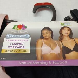 The Fruit of the Loom Comfort Bra 2 Pack in Women's Size M Medium features a classic style with a comfortable design. Made from 90% cotton, these bras provide a soft and breathable feel. The set includes a pink and black color combination, with a size 34C cup for a regular fit. Perfect for everyday wear, this bra set from a trusted brand ensures both style and comfort for the modern woman.
