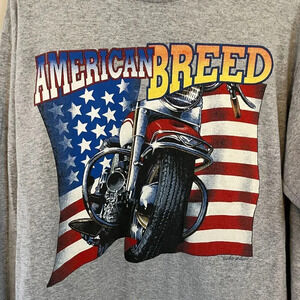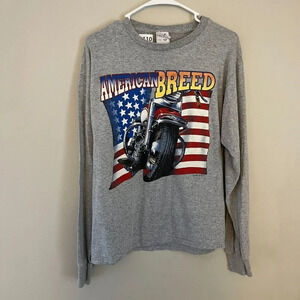 Fruit Of The Loom Gray Pullover T Shirt Large American Breed USA Motorcycle