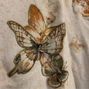 Fruit Of The Loom Sweatshirt Women’s L Cream Long Sleeve Embellished Butterfly