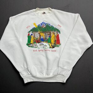 Fruit Of The Loom Vintage 1993 Nativity Scene Crewneck Sweatshirt White Mens XL