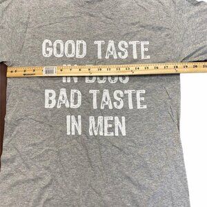 Fruit Of The Loom Women's Gray Graphic T-Shirt Size M "Good Taste In Dogs Bad Taste In Men" Crew Neck Short Sleeves Cotton