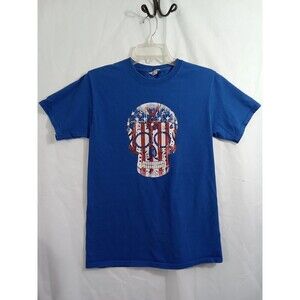 Fruit Of The Loom women small tee shirt blue skull American Flag Floral no notable damage small stain see pictures