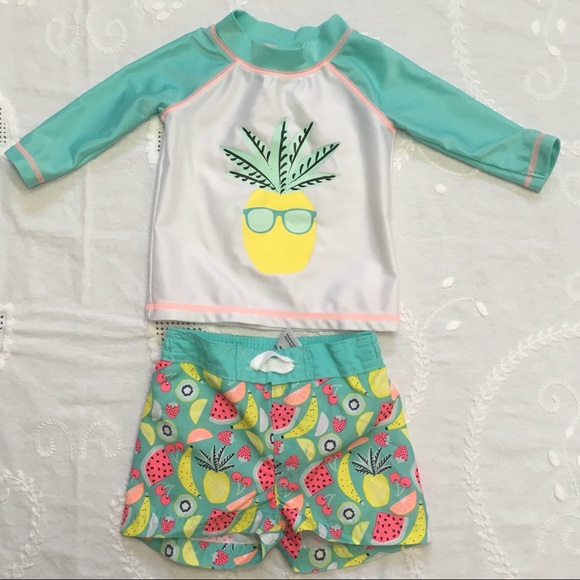 Long sleeved, fruit print, two-piece rash guard w/ tie front shorts Good used condition from smoke free home BUNDLE & SAVE!!!!