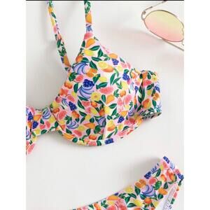 Details: Underwire, push up, spaghetti strap, all over print, removable pads, lined, stretchy, high leg