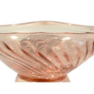 Fruit bowl serving dish ribbed swirl pink glass scalloped edge table decor
