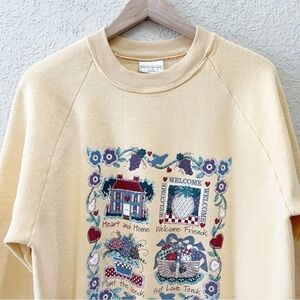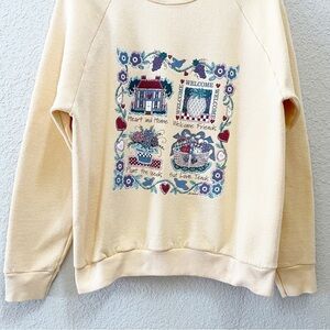 Fruit of The Loom Sweater Pullover Crew Vintage Floral Grandma Cottagecore Large