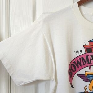 VTG and straight out of the 90s - This graphic tee was made in the USA to feature short sleeves, a ribbed crewneck, and a classic fit. It has a single stitch hem. It is white in color with a multicolored graphic on the front that reads Bowman Field 75th Anniversary 1919-1994 with an illustrated graphic of an airplane. It is soft, lightweight, and comfortable. Pair with jeans and sneakers for a classic, retro look! Different, unique, and high quality!