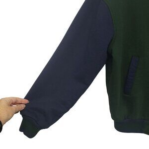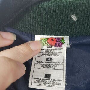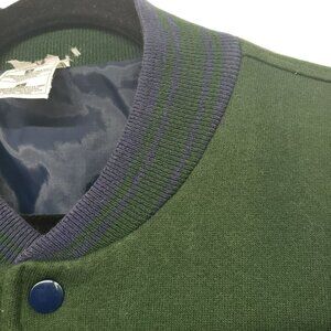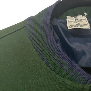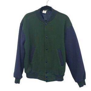 Fruit of the Loom Bomber Varsity Jacket Green Blue Snap Button 90s Retro Vintage