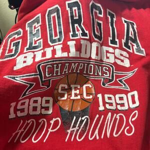 Graphic: “GEORGIA BULLDOGS CHAMPIONS SEC 1989-1990 HOOP HOUNDS” with basketball design