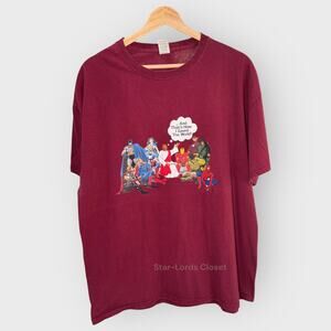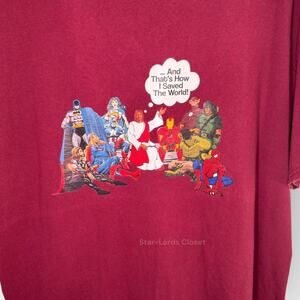 Fruit of the Loom Red Jesus and Superheroes Tee XL Crewneck Graphic Faith Pop Culture