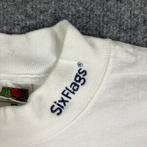Fruit of the Loom Shirt Mens XL White Six Flags Long Sleeve Graphic Casual Tee