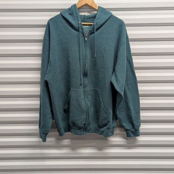 Fruit of the Loom Size Large Greenish Blue Zip Front Hoodie