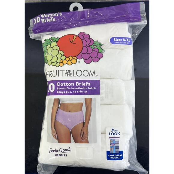 Fruit of the Loom Women's 10 Cotton Briefs White Size 8 / XL NEW