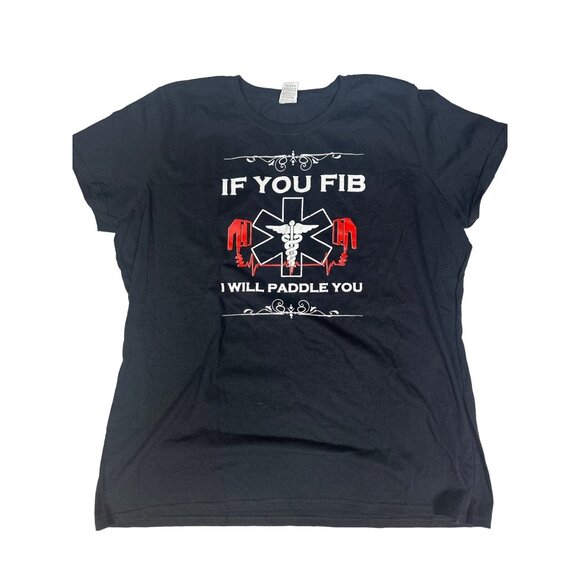 Fruit of the Loom Womens 3XL Black If You Fib I Will Paddle Funny Nurse T Shirt