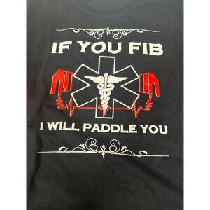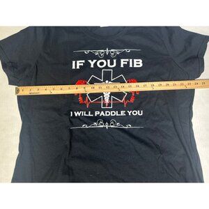 "Fruit Of The Loom Womens Shirt with amusing 'If You Fib i Will Paddle You' print. Size 3XL in black color. New without tags, pullover style with round neck. Crafted from 100% cotton for comfortable wear.