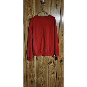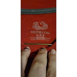 Fruit of the Loom red sweatshirt, size M, small bleach stains on front (price is reflected), 60% cotton 40% polyester, fair condition.
