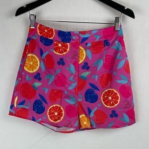 Fruit print high waisted hot shorts with side pockets pink