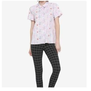 Fruits Basket Zodiac Icons Girls Sm Woven Button-Up Shirt top Novelty Print