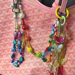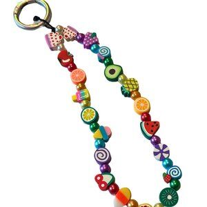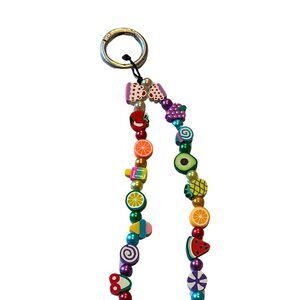 - Vibrant and playful bag charm featuring assorted fruit, candy, and dessert-themed beads